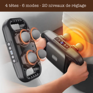 Pistolet de massage automatique à 4 têtes avec 6 modes et 20 niveaux de réglage pour relaxation musculaire