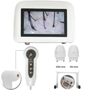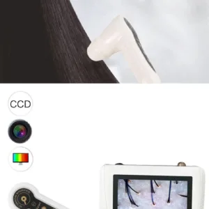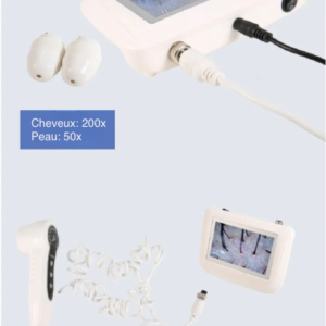 Cet appareil d’analyse de la peau et du cuir chevelu est conçu pour détecter avec précision divers problèmes cutanés et capillaires. Il est équipé d’un écran de 5 pouces et livré avec deux lentilles interchangeables, permettant un diagnostic détaillé et une observation claire.