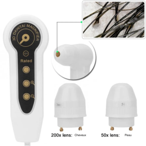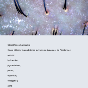 200X : parfaite pour observer les problèmes du cuir chevelu (infections, follicules bouchés, excès de sébum)