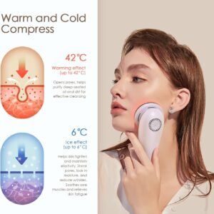 Double Fonction Chaud/Froid avec Commutation Rapide: Notre appareil de massage facial permet un nettoyage en profondeur tout en apaisant et purifiant la peau. Le mode chauffant à 42°C ouvre les pores pour un nettoyage efficace des impuretés profondes, tandis que la compresse froide à 6°C resserre rapidement les pores, maintient l’hydratation, apaise la peau, et scelle les soins appliqués.