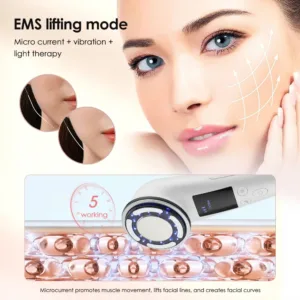 Mode EMS et Vibrations Ultrasoniques: Le micro-courant EMS stimule la régénération cellulaire, améliore la circulation sanguine et restaure l’élasticité de la peau grâce à un effet liftant en 3D. Les vibrations à haute fréquence, en plus de masser la peau, offrent un nettoyage en profondeur, aidant à résoudre les problèmes de pores obstrués, de peau ternie, et à réduire la fatigue cutanée.