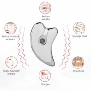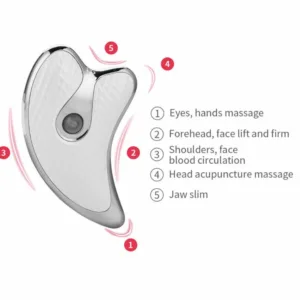 Le Masseur combine l’efficacité d’un traitement anti-rides avec la tradition ancestrale de la pierre de Gua Sha. Cette alliance novatrice favorise le rajeunissement en stimulant la circulation sanguine et en réduisant les tensions musculaires du visage, du cou et du corps. La pierre de Gua Sha, connue pour ses propriétés thérapeutiques, s’associe harmonieusement à ce dispositif, procurant une expérience unique de bien-être et de lutte contre le vieillissement cutané.