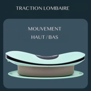 - Traction lombaire ajustable : Étire la colonne vertébrale en douceur pour réduire la pression sur les disques et les nerfs.