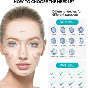 Microneedling : Stimule la production de collagène, améliorant l’élasticité de la peau et réduisant l’apparence des rides, des ridules et des cicatrices.