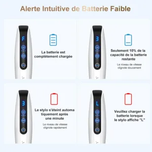 Adapté aussi bien aux professionnels qu’à un usage domestique, le BioPen est simple à manipuler. Son écran tactile intelligent permet de régler facilement la vitesse des micro-aiguilles, l’intensité du courant EMS et la couleur de la lumière LED. Grâce à son interface intuitive et son indicateur de batterie faible, vous gardez toujours le contrôle sur son niveau de charge.