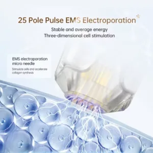 Électroporation par EMS : Utilise des micro-courants pour améliorer l’absorption des produits de soin, raffermissant et tonifiant la peau.
