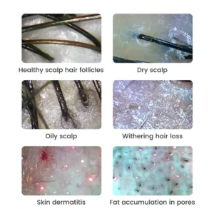 Cet appareil utilise des principes optiques avancés pour capturer des images détaillées de la peau et des cheveux, en agrandissant les zones testées grâce à des lentilles spéciales. Il permet ainsi de visualiser ce qui est invisible à l’œil nu, facilitant l’analyse et les conclusions.