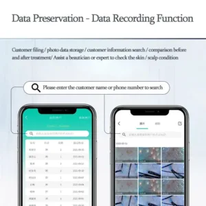 Ce dispositif combine une technologie électronique avancée avec un design élégant et une utilisation intuitive. Équipé de deux sondes et d’une résolution 1080P, il offre une analyse claire et précise de la peau et des follicules pileux.
