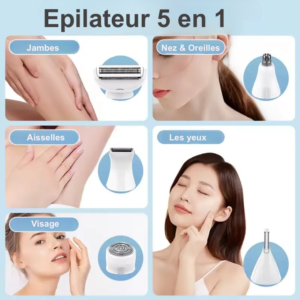 Épilateur Électrique 5 en 1 pour Femme – Rechargeable & Étanche IPX7