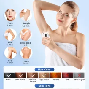 ● 5 niveaux d’intensité ajustables : Adaptés aux peaux sensibles pour une épilation en douceur.
