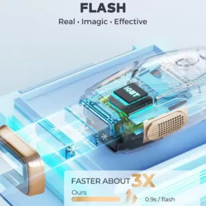 ✔ Contrairement aux épilateurs traditionnels avec un temps de flash de 2 à 3 secondes, notre technologie avancée réduit ce délai à 0,9 seconde.