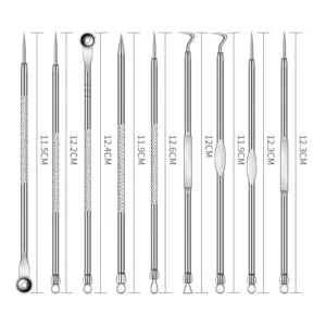 - Curette: Pour enlever les comédons et les petites pustules.