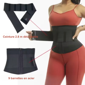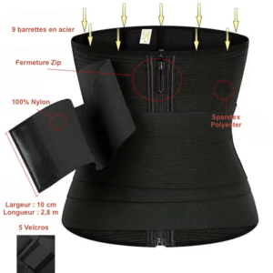 L’élément clé de ce produit est sa ceinture de serrage détachable, mesurant 10 cm de large et 2,8 m de long. Non seulement elle renforce l’effet amincissant, mais elle peut également être utilisée séparément comme accessoire pratique pour affiner votre taille ou pour d’autres activités sportives.