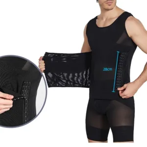 Spécialement conçu pour les hommes cherchant à affiner leur silhouette et à améliorer leur posture, ce gilet de compression double action est un allié incontournable. Doté de 4 rangées d’agrafes réglables, il permet un ajustement précis et progressif selon vos objectifs et votre confort. Sa couture croisée renforcée assure une compression ferme sur le ventre, la taille et le dos, offrant un excellent maintien tout en sculptant efficacement votre silhouette.