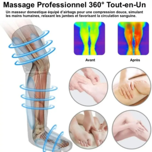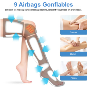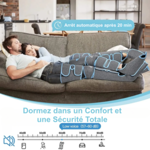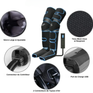 Relaxation optimale pour vos jambes : Ce masseur de jambes confortable stimule la circulation sanguine en simulant le pétrissage et la caresse des tissus grâce à ses chaussures gonflables. Conçu pour détendre vos pieds, mollets et cuisses après l’exercice, une longue journée debout ou une activité sédentaire.
