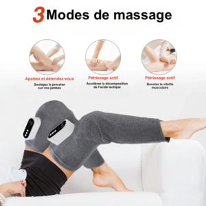 1️⃣ Massage par compression d’air : Grâce à une pression bidirectionnelle et une compression circulaire, ce dispositif soulève et masse efficacement les muscles des jambes pour une détente optimale.