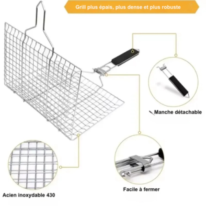 ✅ Grillage renforcé : Maintient parfaitement les aliments en place et empêche qu’ils ne tombent dans les flammes.