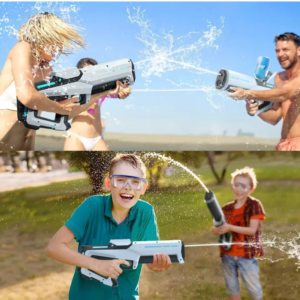 Fini le pompage manuel ! Grâce à son système innovant d’aspiration automatique, il suffit d’immerger l’embout dans l’eau et d’appuyer pour recharger instantanément. Profitez de tirs en rafale continus pour des batailles aquatiques encore plus intenses !