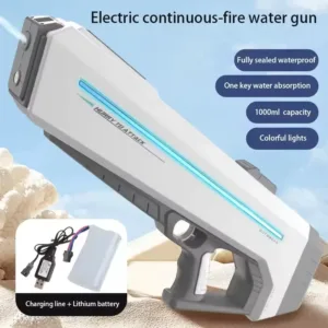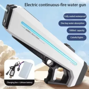 Offrez-vous la crème des pistolets à eau avec ce modèle électrique ultra-puissant ! Conçu pour transformer vos batailles d’eau en véritables shows, il combine vitesse, puissance et technologie moderne pour une expérience de jeu inégalée.