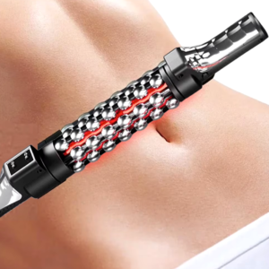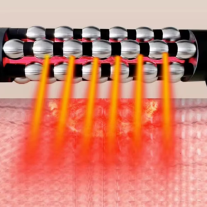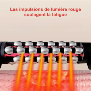 - Lumière rouge chauffante : Émet des impulsions de lumière rouge pour stimuler la production de collagène, améliorer l’élasticité de la peau et favoriser la réduction des graisses localisées.