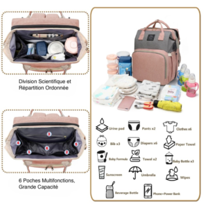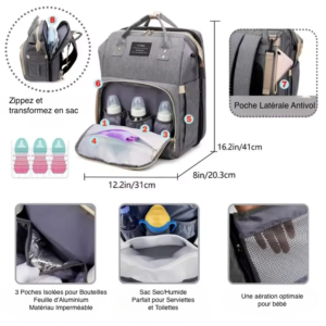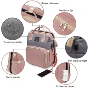 Un sac super fonctionnel avec un design élégant. J’adore l’idée du matelas intégré et du port USB pour recharger mes appareils. C’est un cadeau idéal pour les mamans.