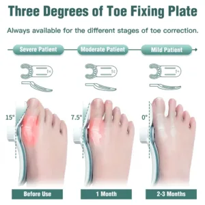 Innovation et mise à niveau – Ce correcteur d’oignon 3D breveté offre une amélioration complète du dispositif de correction. Il est doté d’un bouton de réglage innovant permettant d’ajuster précisément l’angle de correction. La sangle réglable garantit un maintien optimal et un ajustement sur mesure en fonction du degré de valgus. L’angle peut être réduit progressivement, permettant une correction visible à l’œil nu. Convient aussi bien aux cas modérés que sévères d’hallux valgus.